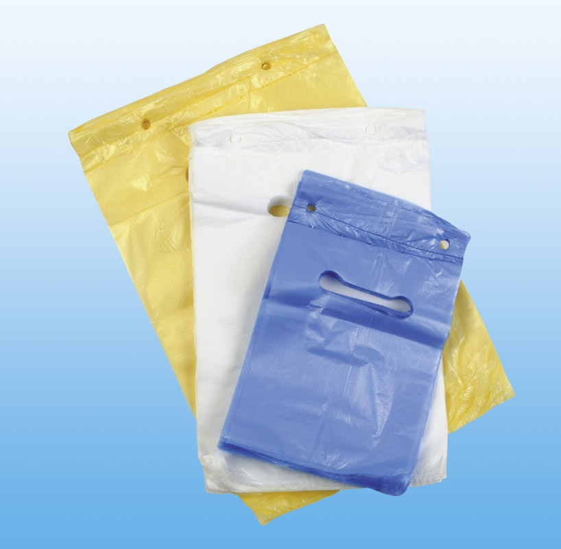 The polyethylene, coloured collecting bags are made of HDPE and LDPE regranulates with bottom welding. Individual colour demands can be met.